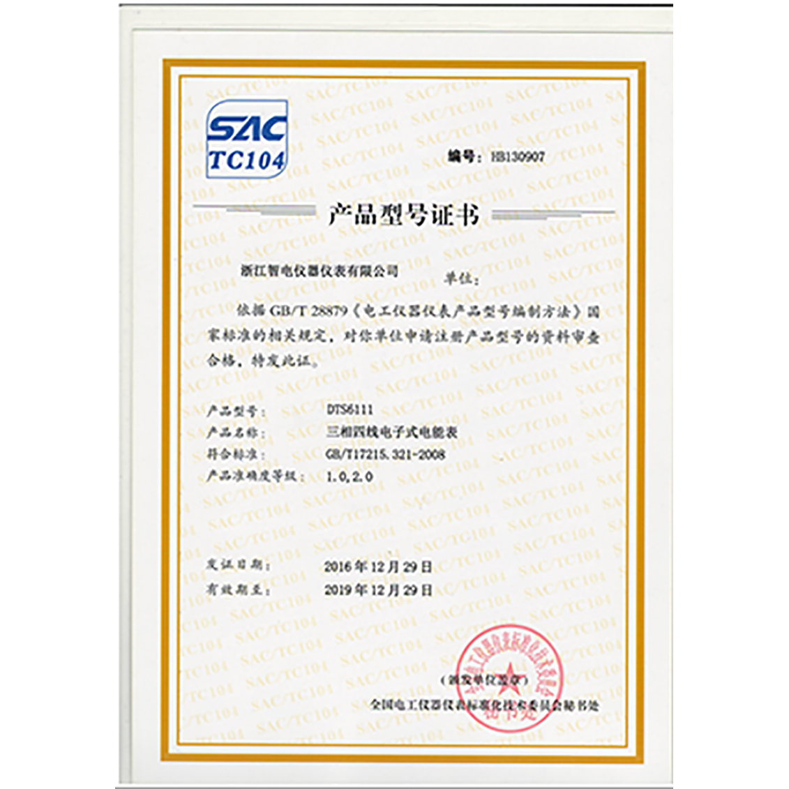 DTSY6111產(chǎn)品型號(hào)證書