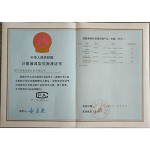 計(jì)量器具型式批準(zhǔn)證書