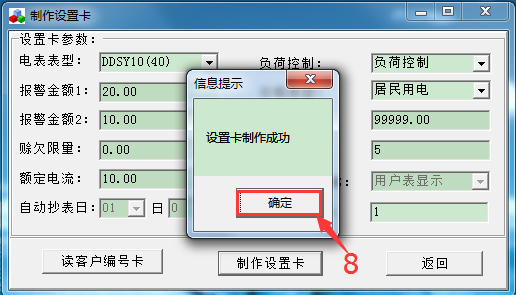 當系統提示“設置卡制作成功”就可以把讀卡器里面的卡拔出來了,標記上“設置卡”。(“設置卡”是通用的,三相四線1.5-6A外接互感器的電表類型除外)