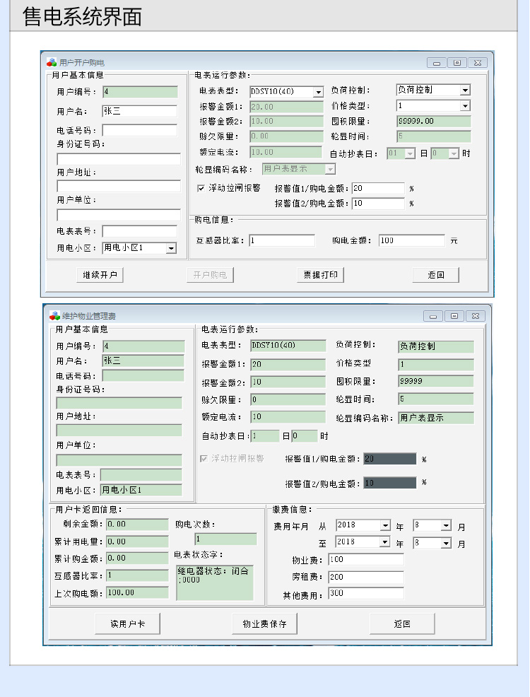 (1)預(yù)付費電能表歷經(jīng)多年發(fā)展,由開始的只能收取電費,發(fā)展到可以代收物業(yè)費和房租費的功能,后續(xù)系統(tǒng)升級為除控制用戶用電外,還可控制用戶的物業(yè)費或房租費(物業(yè)費或房租費到期電表自行斷電,補交物業(yè)費或房租費后,預(yù)付費電表方可來電),本章通過圖片形式講解用戶關(guān)于預(yù)付費電度表的功能、操作系統(tǒng)、接線方式等問題。