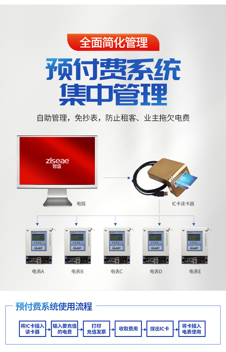 (6)預(yù)付費電表的使用流程:1將IC卡插入讀卡器 2輸入要充值的金額 3電影充值發(fā)票 4收取費用 5拔出IC卡 6將IC卡插入電表使用,具體操作如下。