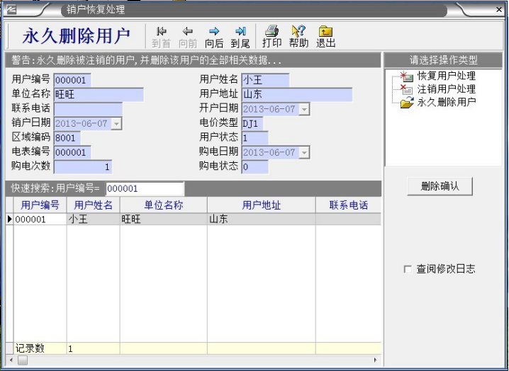 預付費電表系統(tǒng)管理者,在平時的操作中經(jīng)常會遇到需要刪除用戶,小編在接下來通過圖片和文字詳細介紹這方面的操作。
