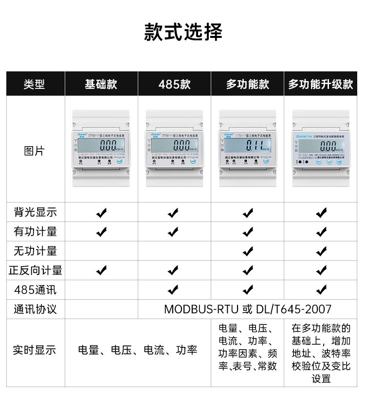 4.計量等級:有功0.5S級、無功2.0級或有功1.0S級、無功2.0級