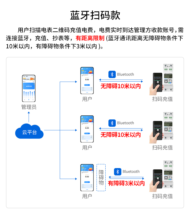 本公司DDSY6111/DDZY6111遠程智能電表與本公司遠程抄表系統和手機APP配套使用,遠程抄表管理系統具有實時抄表、定時抄表外,還提供了設備管理功能,如告警、余額短信通知、遠程充值、手機抄表、手機查詢、手機充值、預付費、后付費、自助充值機充值、遠程拉合閘、各種查詢報表、統計報表下載等功能。