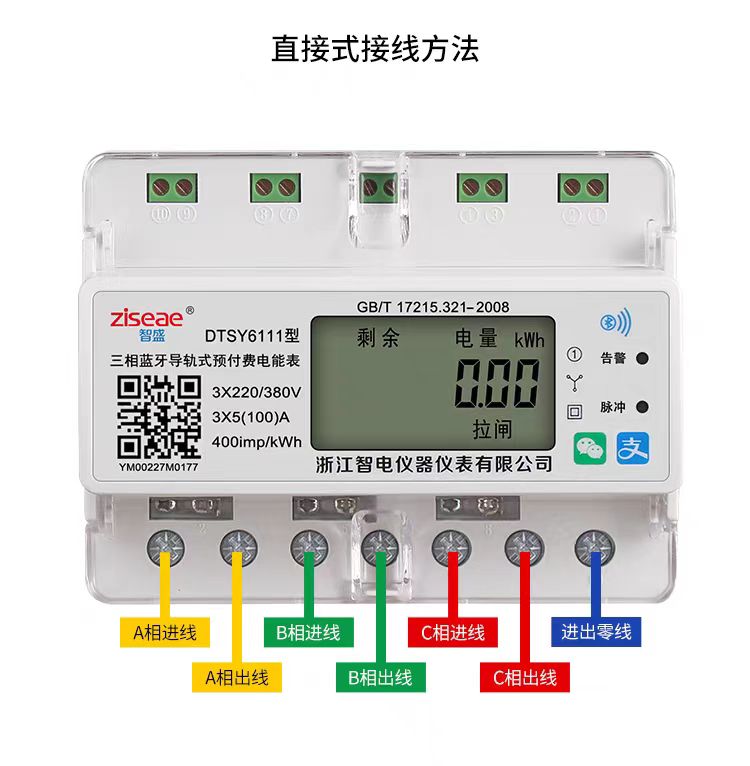 三相導(dǎo)軌式藍(lán)牙掃碼充值電表