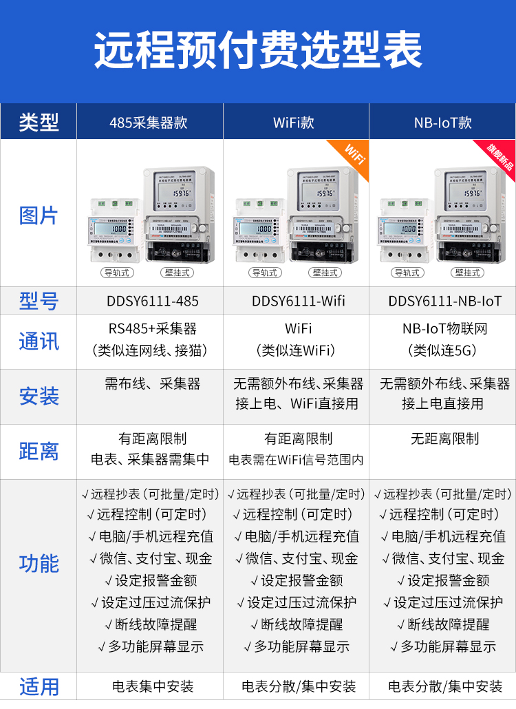 遠程充值預付費電表可與本公司遠程抄表系統和手機APP配套使用,遠程抄表管理系統具有實時抄表、定時抄表外,還提供了設備管理功能,如告警、余額短信通知、遠程充值、手機抄表、手機查詢、手機充值、預付費、后付費、自助充值機充值、遠程拉合閘、過壓過流保護、各種查詢報表、統計報表下載等功能。